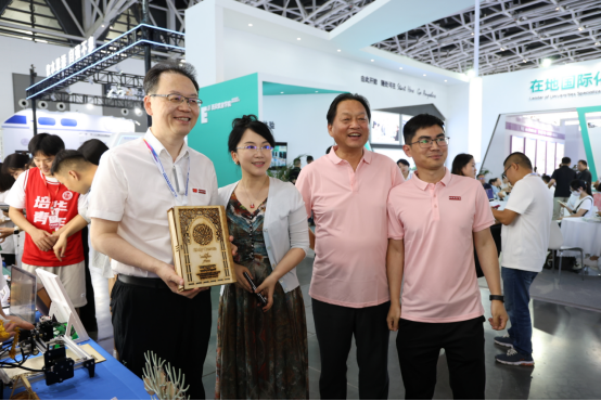 学校理事长姜波、校长李映方、副校长姚文静在教博会现场指导工作。