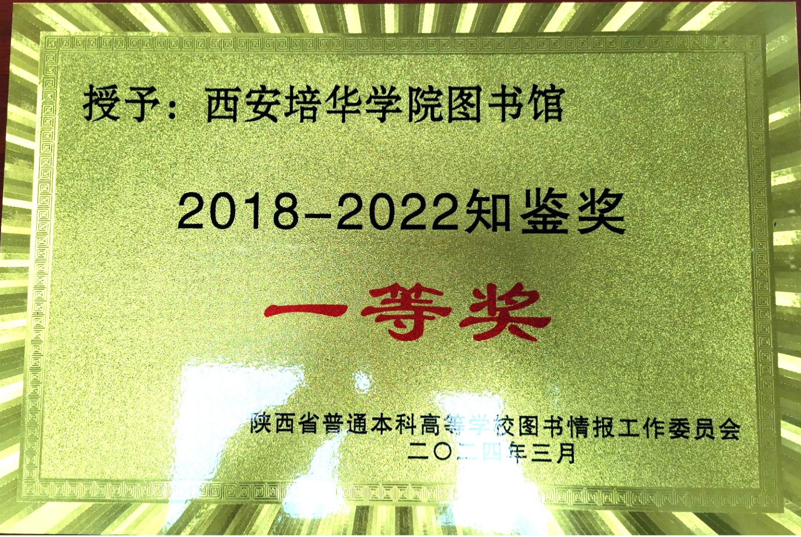 会议通报了2018-2022年高校图书馆事业统计工作先进集体,学校与西安交通大学、西北大学、西安音乐学院等12所高校图书馆荣获2018——2022知鉴奖一等奖。