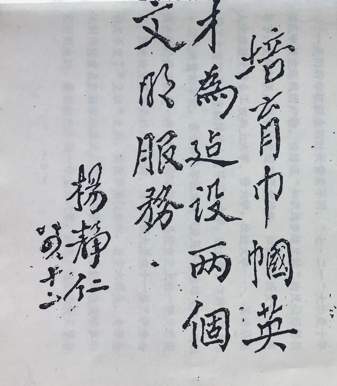 全国政协副主席杨静仁为培华女子大学亲笔题词