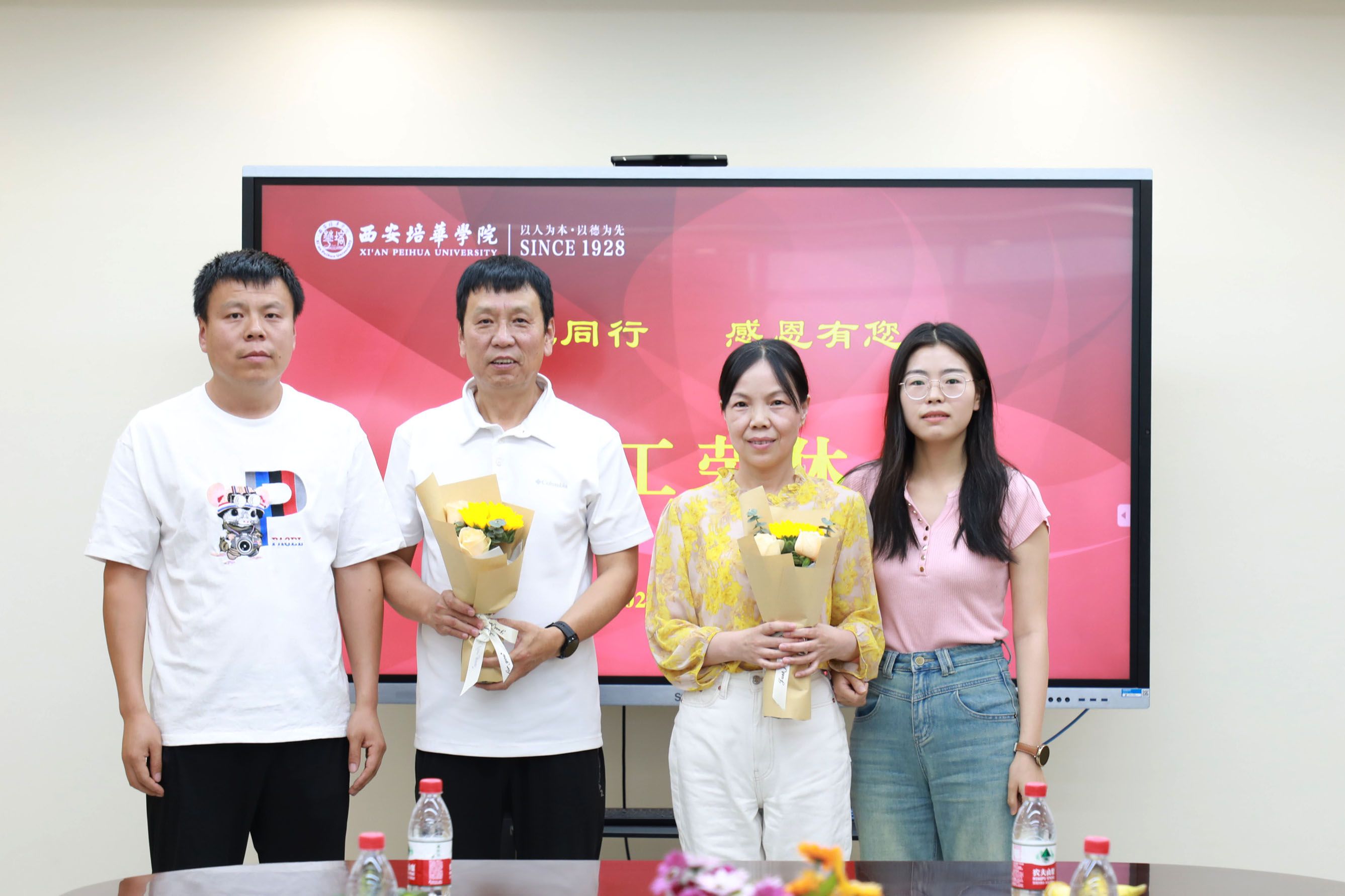 发展规划与质量建设中心赵巍主任及后勤服务中心张静远主任分别对两位退休教职工工作情况进行了介绍,充分肯定了两位教职工的工作成绩,表达了衷心的感谢之情,期盼今后他们以乐观的心态、积极的姿态迎接美好的退休生活,继续发光发热。李满莉老师和李建华老师深情回顾了多年的工作经历和美好往事,由衷地感谢领导同事们多年来的支持和肯定,表达了对学校的不舍与眷恋,并衷心祝愿学校各项事业蒸蒸日上,祝福培华未来发展越来越好。