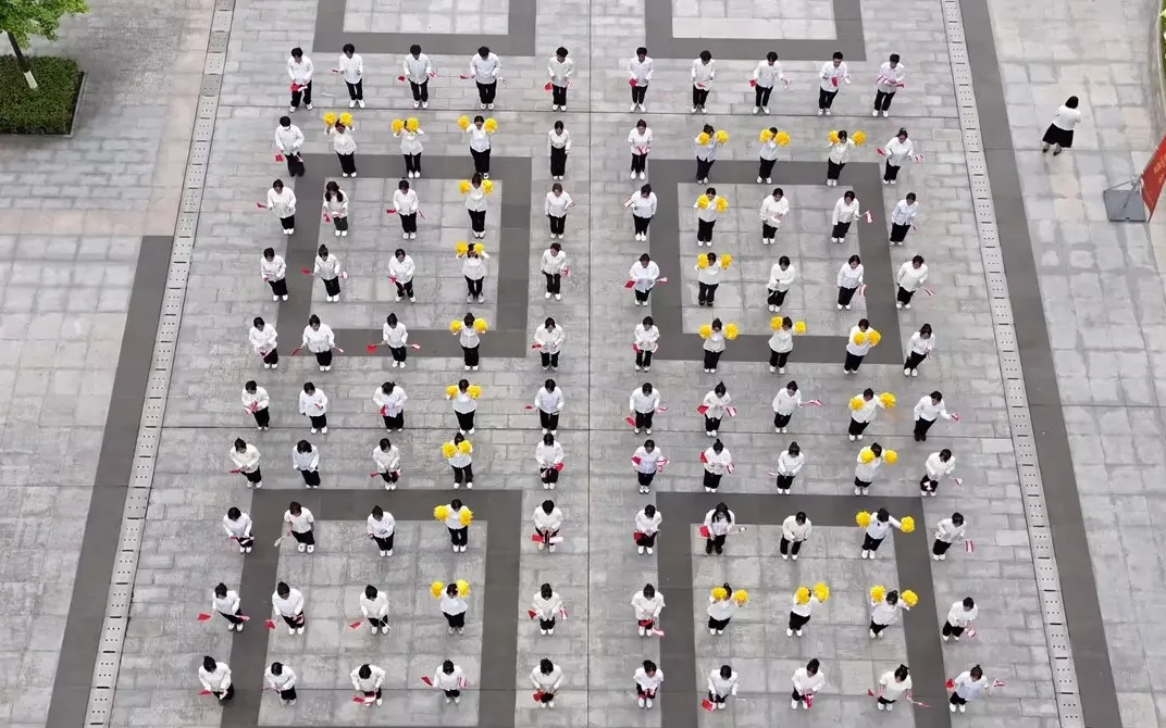 人文与国际教育学院的100名培华青年摆出“75”的图样,寓意在新的奋斗征程上,自觉把“小我”的青春奋斗融入“大我”的时代征程中,埋头苦干、奋勇前进,以优异成绩为新中国成立七十五周年贡献培华青年的磅礴力量。