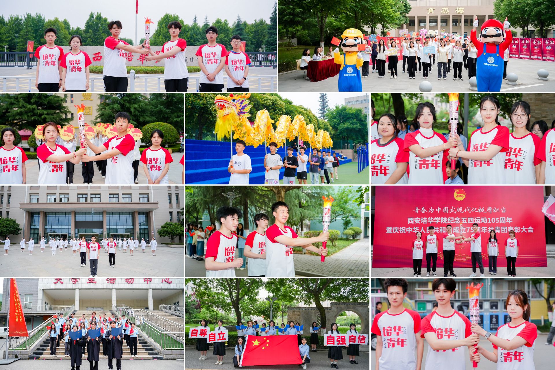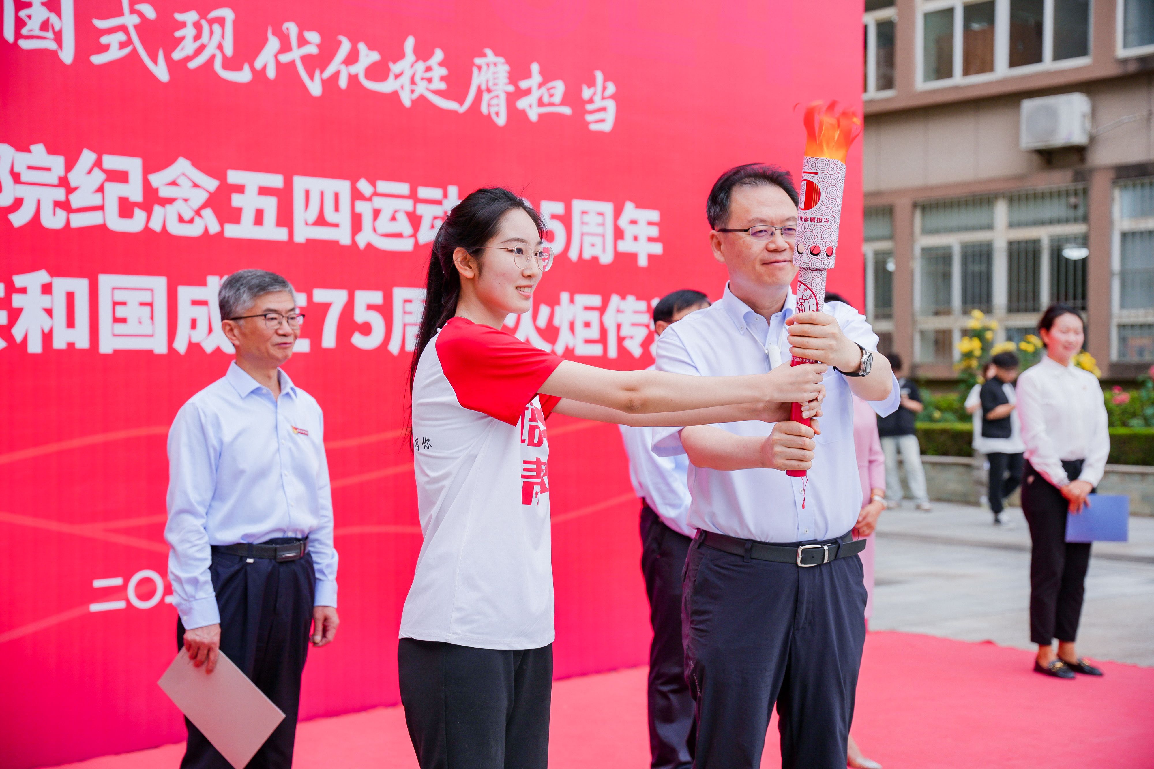 星星火炬,是培华精神传承不息的象征。来自志愿服务、社会实践、团学工作、学科竞赛、先进集体等领域组成的75名火炬手,从格物楼西广场出发,在校园里昂首阔步前行,高举火炬,充分展示着培华青年挺膺担当、接续奋斗的坚定决心,共同献礼新中国成立75周年!