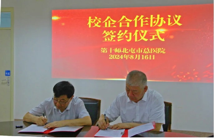 第十师北屯市卫健委一级调研员孟凯致欢迎辞,他对李映方校长一行表示热烈欢迎,并向学校对师市医疗卫生事业发展的大力支持表示感谢。他希望学校能充分发挥专业优势,在医学人才引进、科研教学、医疗服务能力提升等方面,对师市医疗卫生事业发展给予更大的帮助和支持,着力输送一批高端技术人才,推动师市医疗卫生事业高质量发展。