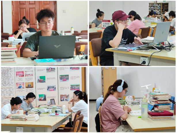 朗朗读书声,孜孜勤学影,清晨六、七点钟,图书馆外草坪上、道路旁、自修室,不少同学在专心致志地读书或背诵;这些如饥似渴的学生中,多为备战研究生、公务员、四六级、专业资格证书考试而来,也不乏阅读爱好者。