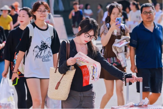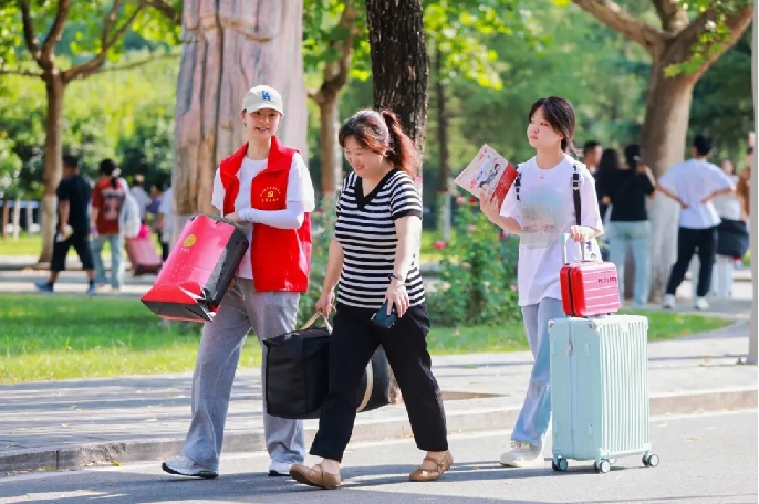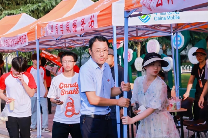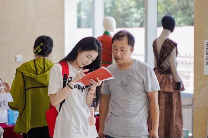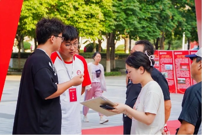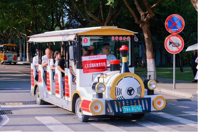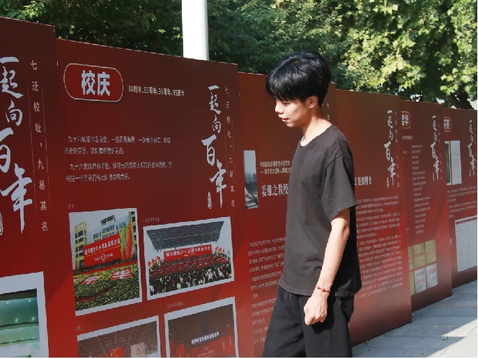 眼神中透露出对学校深厚文化底蕴的敬佩之情