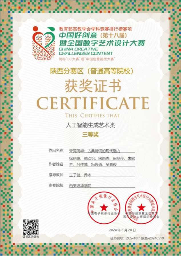 近日,第18届中国好创意暨全国数字艺术设计大赛评审结果公布。传媒与设计学院师生团队成绩喜人,共计获得奖项15项,其中国赛二等奖2项,国赛三等奖2项,省赛一等奖1项,省赛二等奖4项,省赛三等奖6项。