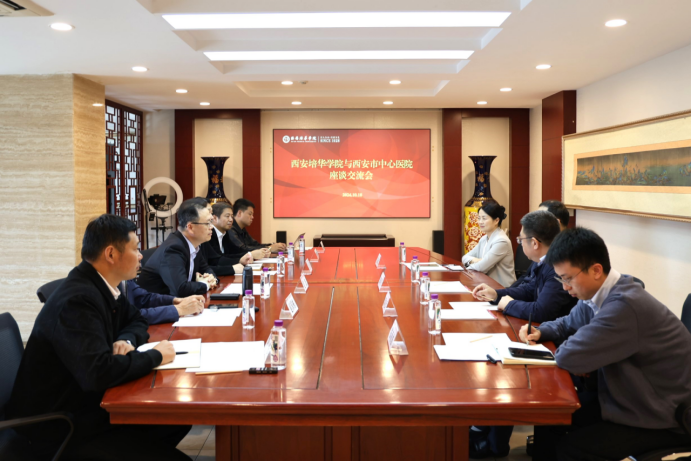 10月18日上午,西安市中心医院院长胡明军一行4人来校考察交流,学校理事长姜波在明德楼五楼会议室与胡明军院长一行进行座谈交流。