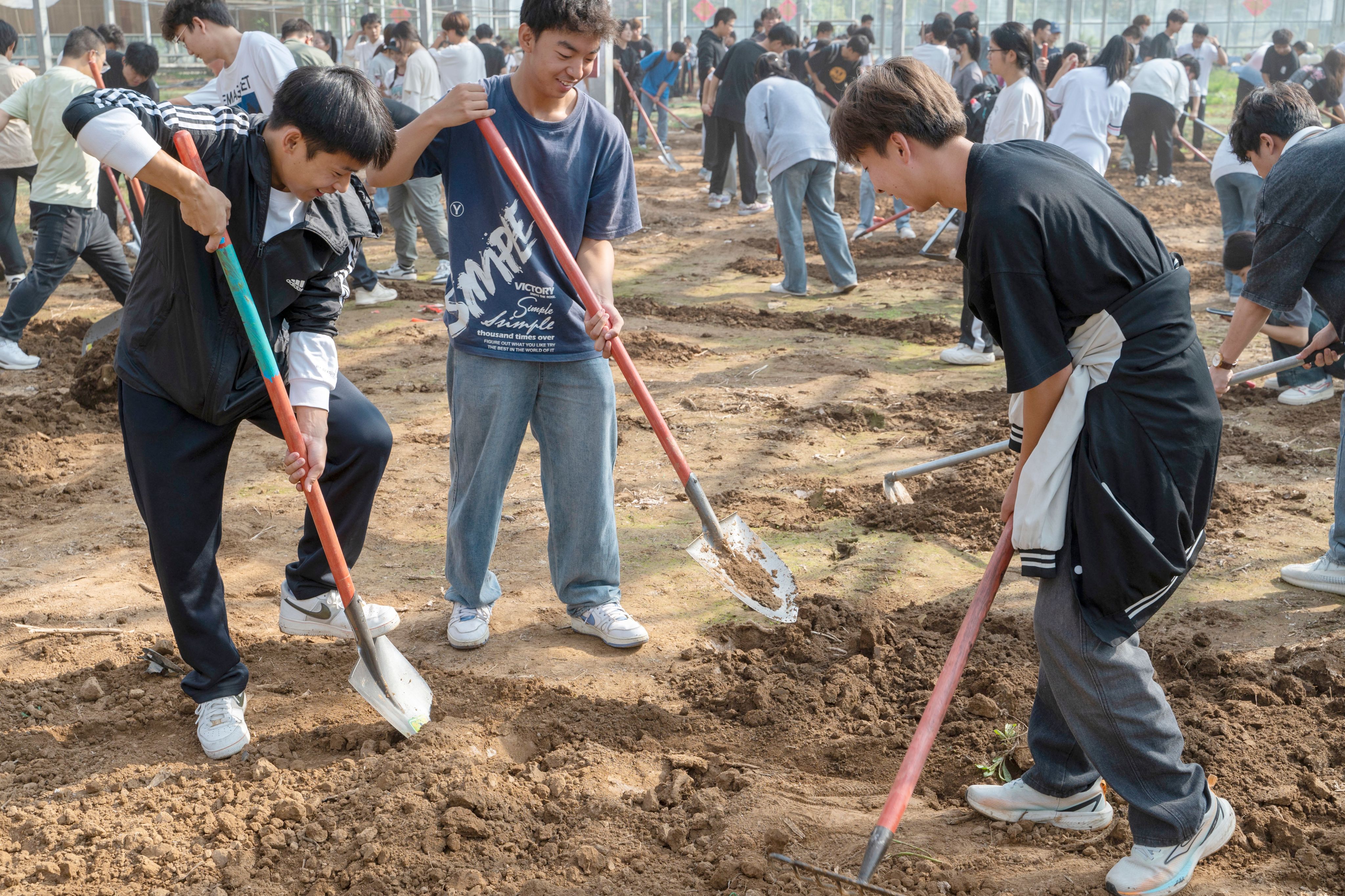 劳动正式开始,同学们纷纷投入到了紧张的劳作中翻土、播种、犁地,每一步都专注而认真。