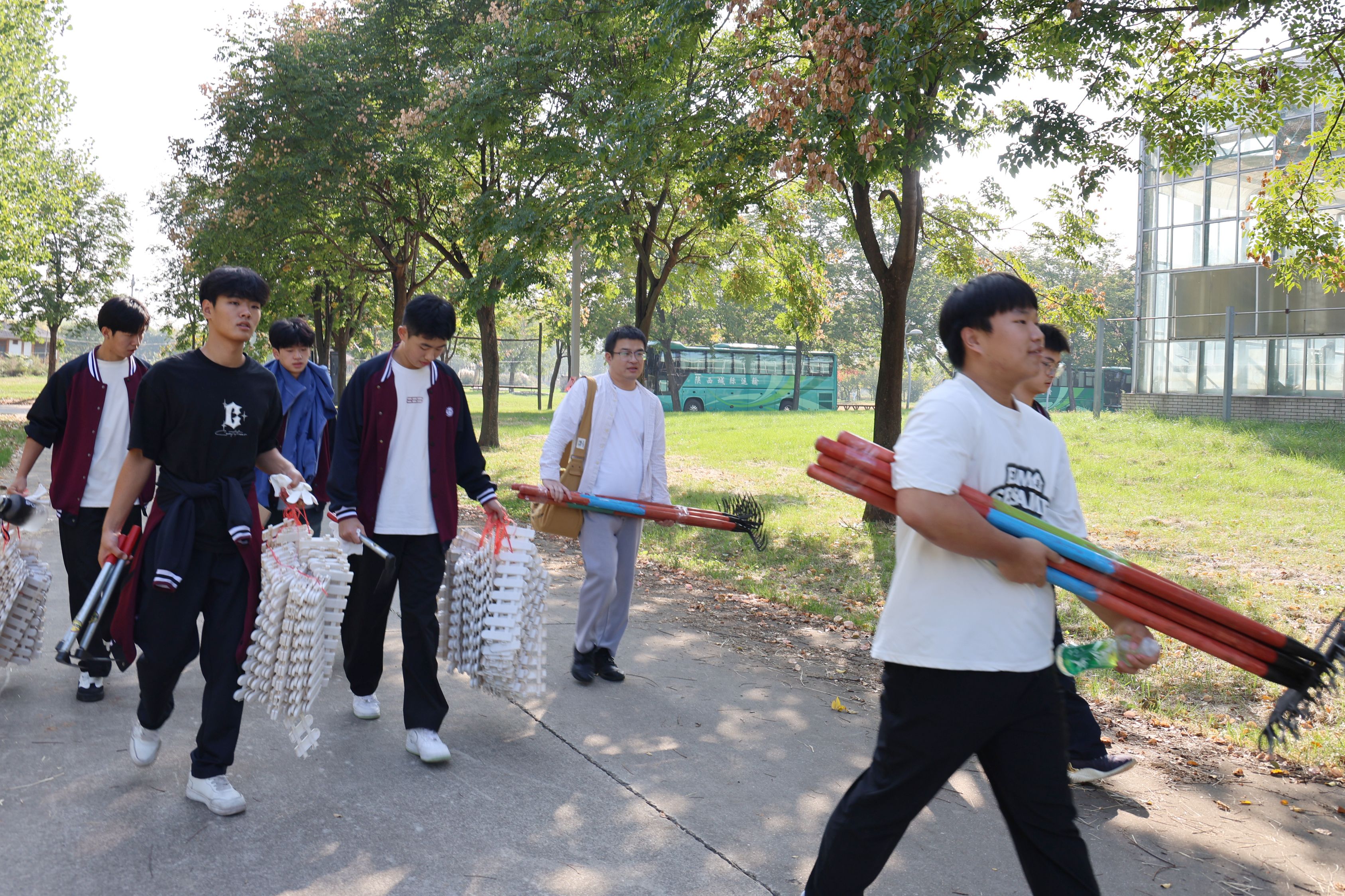 在劳动教育老师们的带领下,大一的学生们按照班级分组领取了各自的劳动工具铁锹、锄头、铲子、篱笆这些平日里很少接触的农具如今成了他们手中的“宝贝”。