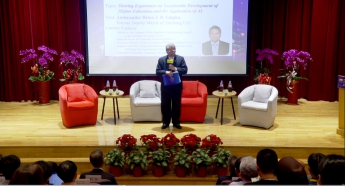 午后举行专题讨论,议题为《高等教育永续发展及AI应用经验分享》,奥克兰商学院校长 Lehan Stemmet、岭东科技大学资讯学院院长陈志明、布拉索夫特兰西瓦尼亚大学商学系系主任 Cristinel Constantin参与讨论,台中市前副市长令狐荣达主持。