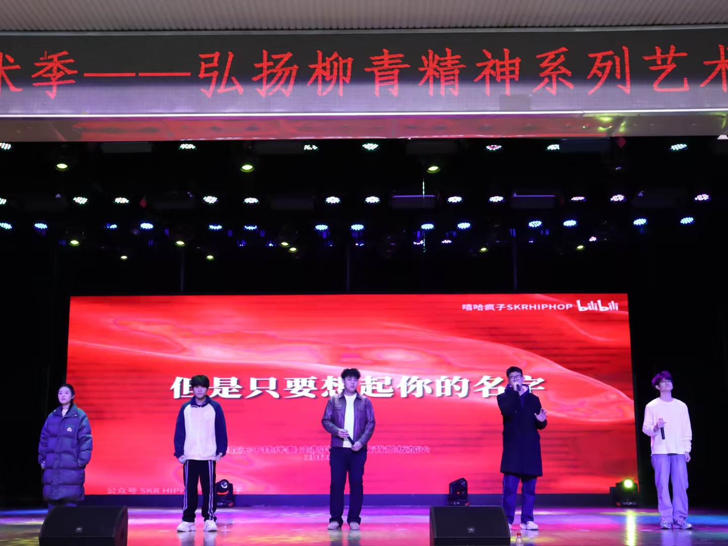 在演出环节,传媒与设计学院的同学们带来柳青文学配乐诗朗诵,他们饱含激情的朗诵让现场观众感受到了柳青文学的魅力。