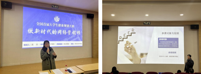 11月20日下午举办了成长赛道师资培训,学生潜能发展中心主任韩赟从本次大赛目标的转变和两届比赛的差异,讲解了职业规划大赛的目标和重要性,及职业生涯规划书的撰写要点,生涯规划教师江洁结合首届职业规划大赛的指导经验,从大赛赛制、参赛作品撰写等方面进行解析及指导。