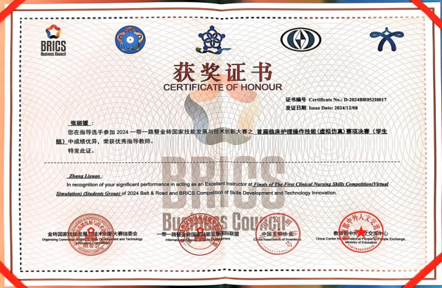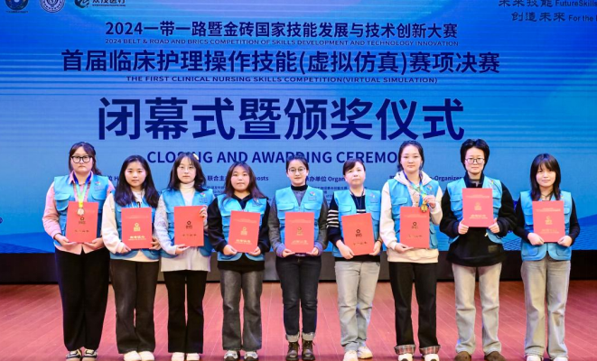 本次大赛由金砖国家工商理事会中方理事会、一带一路暨金砖国家技能发展国际联盟、中国科协“一带一路”暨金砖国家技能发展与技术创新培训中心联合主办,旨在推动金砖国家在技能发展和技术创新领域的合作与交流,提升青年人才的技能水平和创新能力。大赛采用虚拟仿真技术进行临床护理操作,为参赛选手提供了一个展示和提升自己护理操作技能的平台,通过聚焦临床与护理实践核心技能,促进临床思维培养,全面提高学生基于典型工作任务的核心技能、职业素养等职业胜任能力。