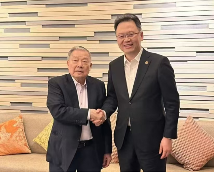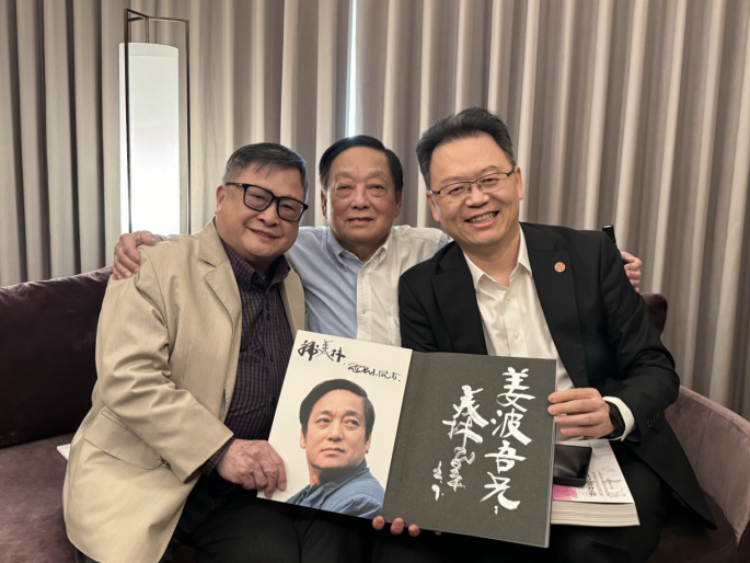 姜波理事长与世界华人协会常务副主席、世界华商投资基金会创会会长马兴利博士、韩美林先生在一起