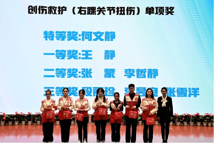 经过激烈角逐,28名参赛选手脱颖而出,田彤彤等7名选手分获个人特、一、二、三等奖,宝鸡职业技术学院等7所高校分别获得团体特、一、二、三等奖。大赛还为26名红十字志愿者颁发了特殊贡献奖。