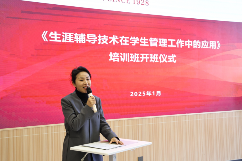 开班仪式上,校党委副书记、副校长姚文静发表了致辞。姚校长指出,生涯教育是高校人才培养的重要组成部分,是落实立德树人根本任务、促进学生全面发展的重要举措。她表示,掌握生涯辅导技术对于高校学生管理工作者而言至关重要,这不仅是辅导员的职责所在,更是其使命所驱。姚校长希望,通过此次培训,辅导员们能够初步掌握专业的生涯教练谈话技术,进而在日常管理与生涯咨询中建立平等、信任、开放的关系,推动学生工作向高效且有深度的方向发展,最终实现辅导员角色的转变,成为学生成长的引导者和陪伴者。