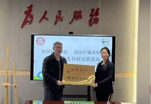 栾博强副院长与党燕宾校长共同为“西安培华学院校外实习基地”揭牌
