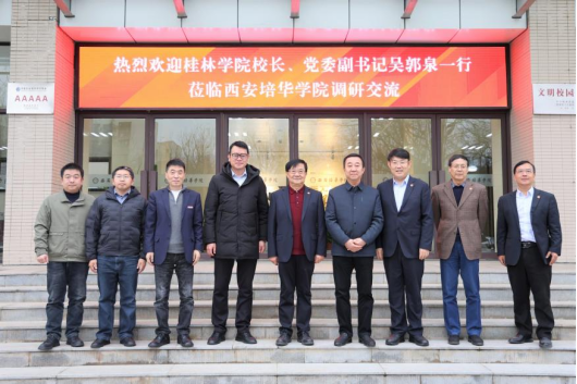 3月14日下午,桂林学院校长、党委副书记吴郭泉一行来校进行考察交流。桂林学院产教融合与创新创业中心主任、教务处常务副处长杨杰夫,桂林学院理工学院院长、网络与信息化处处长李红波,理工学院副院长刘亮龙,理工学院电子信息工程教研室主任朱新波,西安培华学院校长李映方,教务管理中心主任铁卫,智能科学与工程学院院长王文庆、电子系主任徐进参与座谈会。会议由校长助理鲍伟主持。