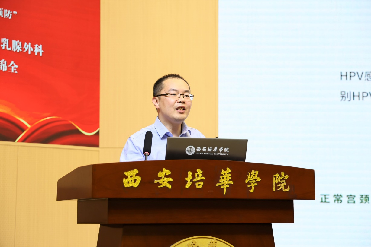 在科普讲座环节,西北妇女儿童医院妇科主任医师刘晨以《宫颈癌预防:从认知到行动》为题,结合临床案例,详细讲解了HPV疫苗接种、定期筛查等关键预防措施。陕西省第二人民医院乳腺外科副主任医师牛锦全则聚焦乳腺癌防治,从自检方法、高危因素到诊疗技术,为在场师生进行了系统讲解。