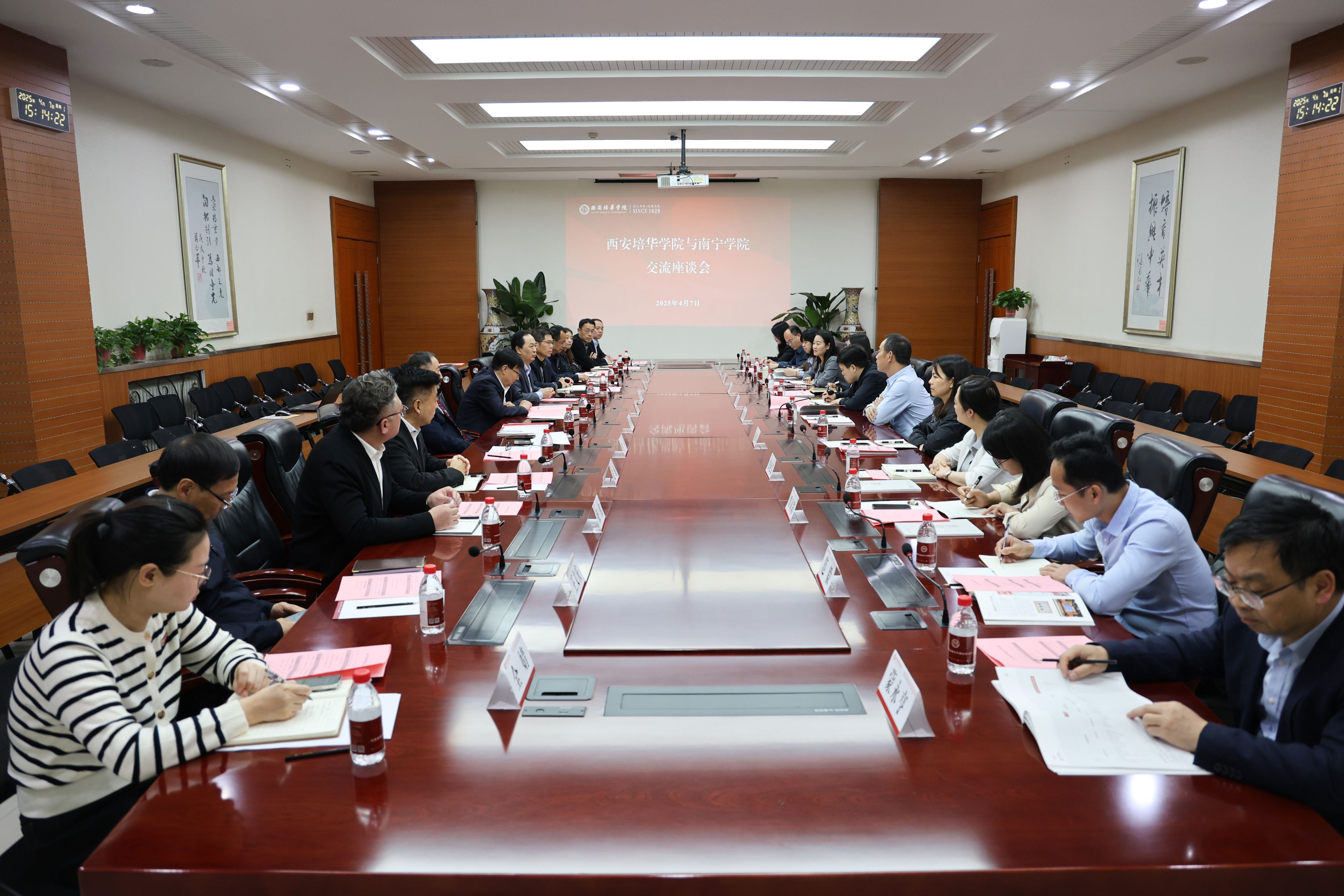 下午,双方在明德楼第一会议室举行见面会。会议由西安培华学院常务副校长胡俊生主持,校长李映方代表学校对南宁学院一行的到来表示热烈欢迎,并回顾了两校自协议签订以来的多次合作与交流。