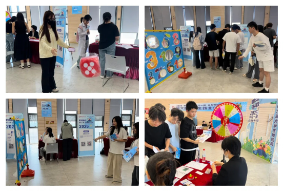 5月28日-30日的“就业体验馆”模块以"闯关—通关—抽奖"的游戏形式展开,分为职业探索篇、求职路演篇、就业政策百宝箱和法律知识小课堂四个主题,包含着装礼仪、简历诊断、面试指导、政策解读、求职陷阱等十二项“关卡”。同学们通过投骰子、投球和转盘等趣味游戏,在轻松愉快的氛围中提升就业能力和行动力。