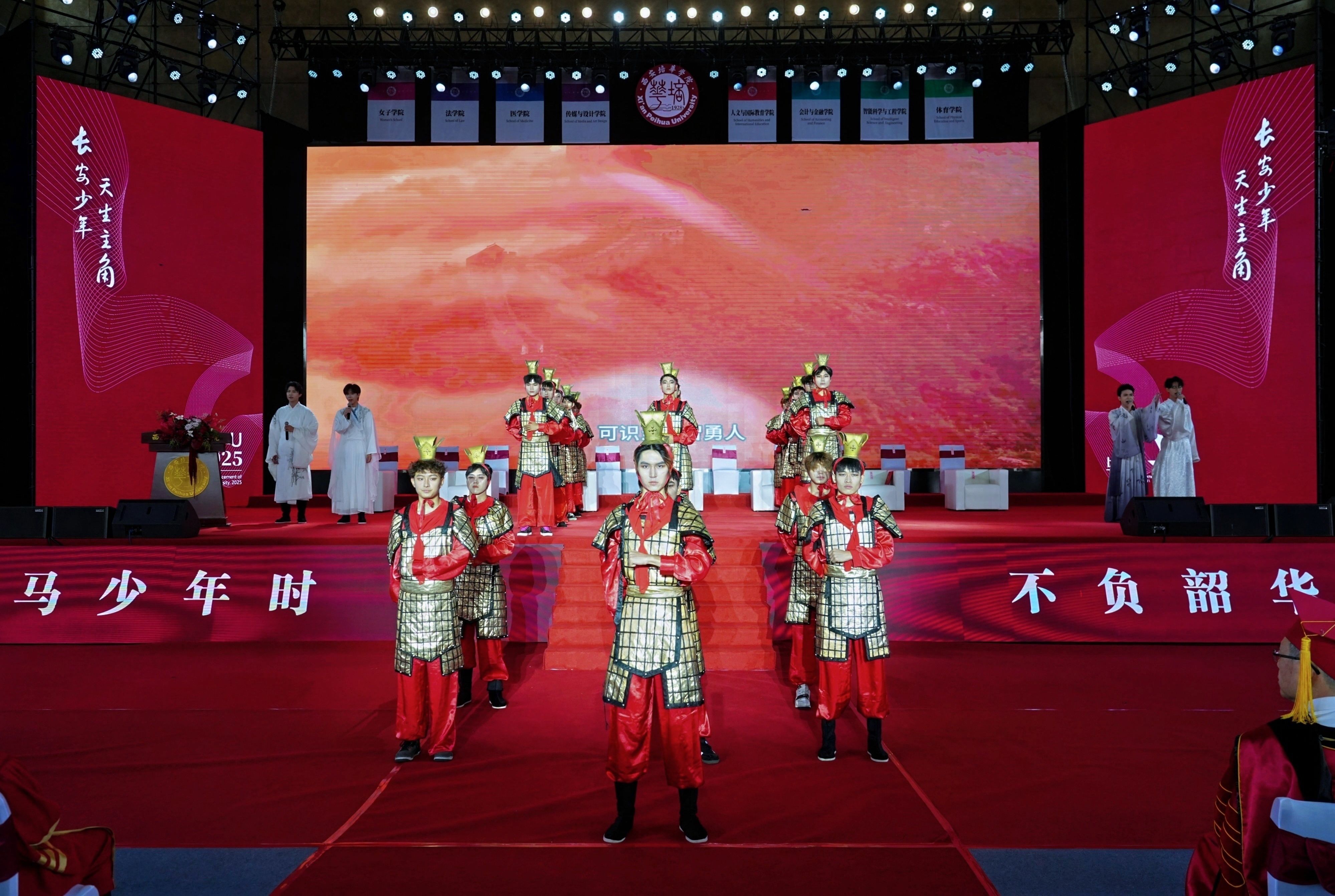 典礼在音诗画情景表演《七律·毕业季——过秦俑有寄》中拉开序幕。悠扬的旋律、深情的朗诵与富有张力的舞台画面交织融合,将百年培华的厚重底蕴与当代青年的蓬勃朝气巧妙联结。