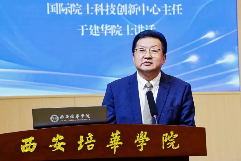 英国皇家学会工艺院院士、国际院士科技创新中心主任、西安培华学院名誉校长于建华院士在致辞中介绍了国际院士科技创新中心的基本情况,他指出国际院士科技创新中心作为汇聚国内外顶尖院士的高端平台,目前已有数百位两院及国际院士加盟,致力于打造“人才库、项目库、资本库”,加速超级项目落地。他希望西安培华学院能积极承担科技创新重任,加快成果转化,推动技术“引进来”与“走出去”,打造民营高校科技创新典范。