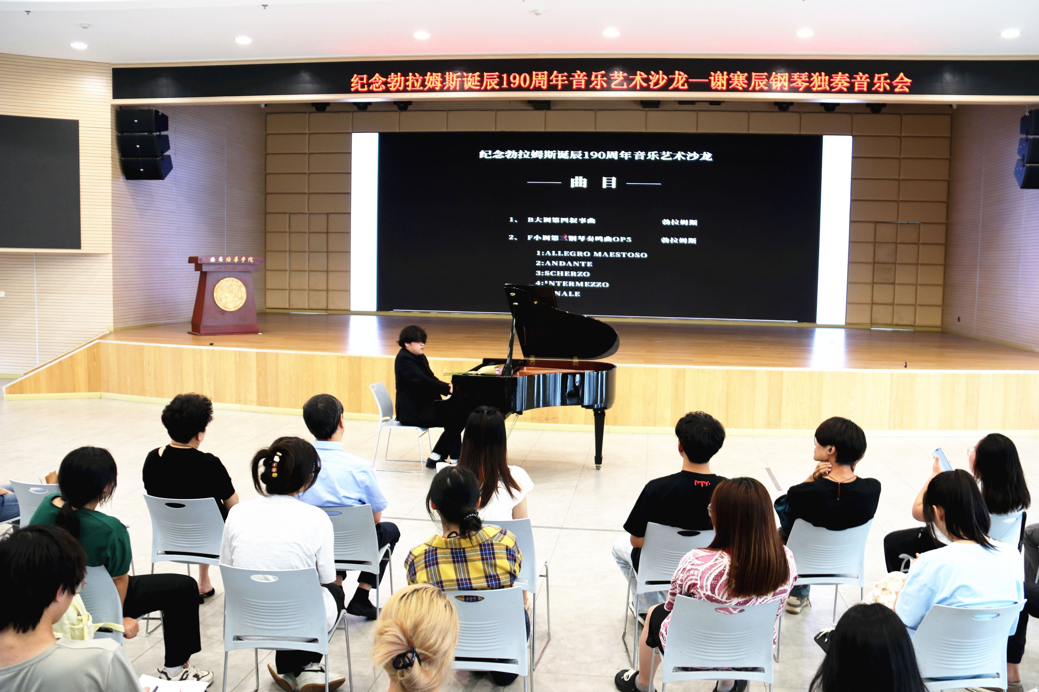 为落实美育浸润行动,丰富校园文化生活,6月18日,由西安艺术教育学会与西安钢琴协会共同主办,西安培华学院艺术教育中心承办的“纪念勃拉姆斯诞辰190周年音乐艺术沙龙——谢寒辰钢琴独奏音乐会”在恒友楼华美上演,学院艺术教育中心主任刘荣弟主持音乐会。