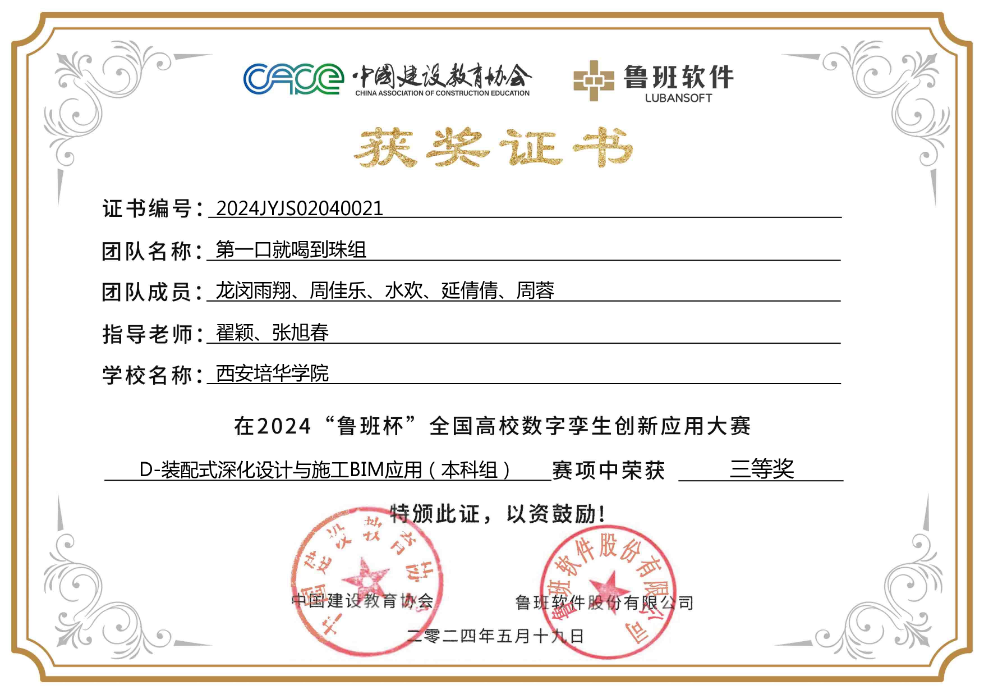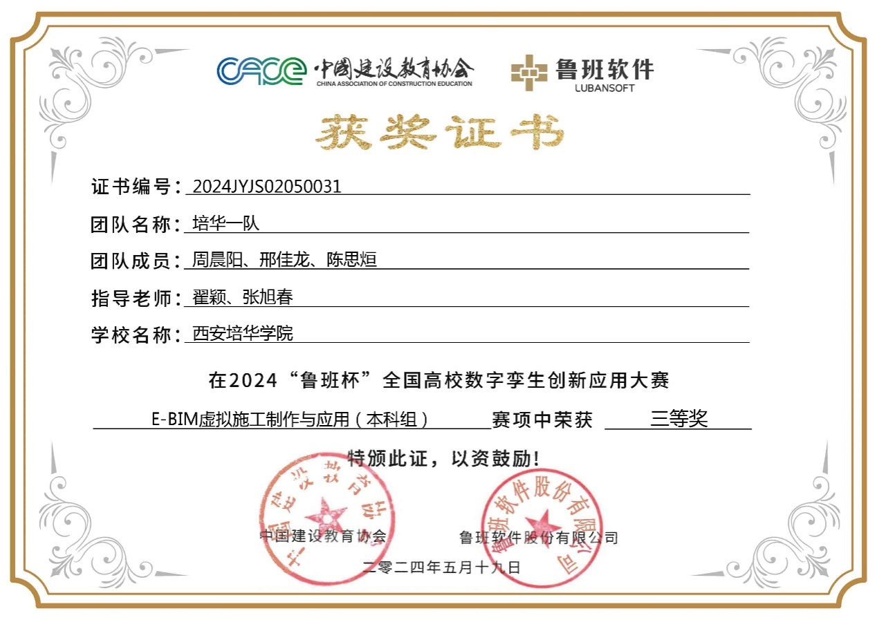 室内设计与施工BIM应用赛项团队三等奖