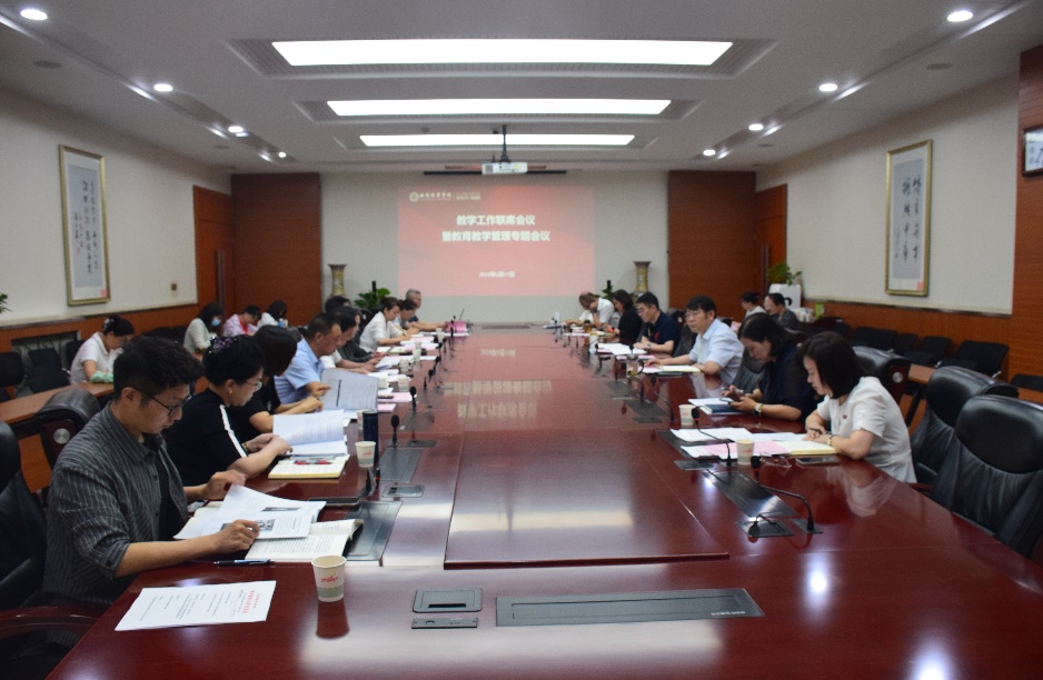 各学院、教学单位负责人学习教育教学规范化管理相关制度并进行工作汇报,围绕教育教学质量监测、教学秩序保障、学生管理、学位管理、学业考核过程管理等关键问题,进行专题研究。