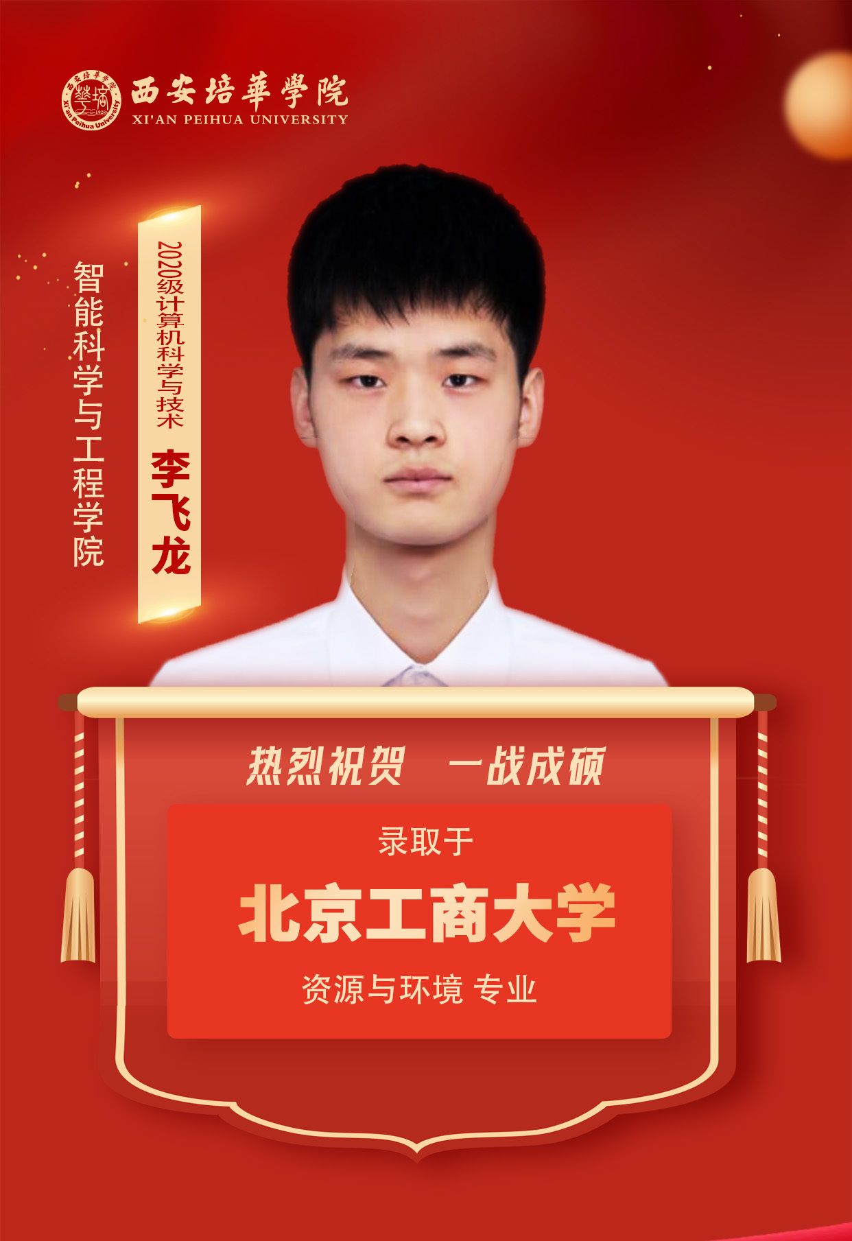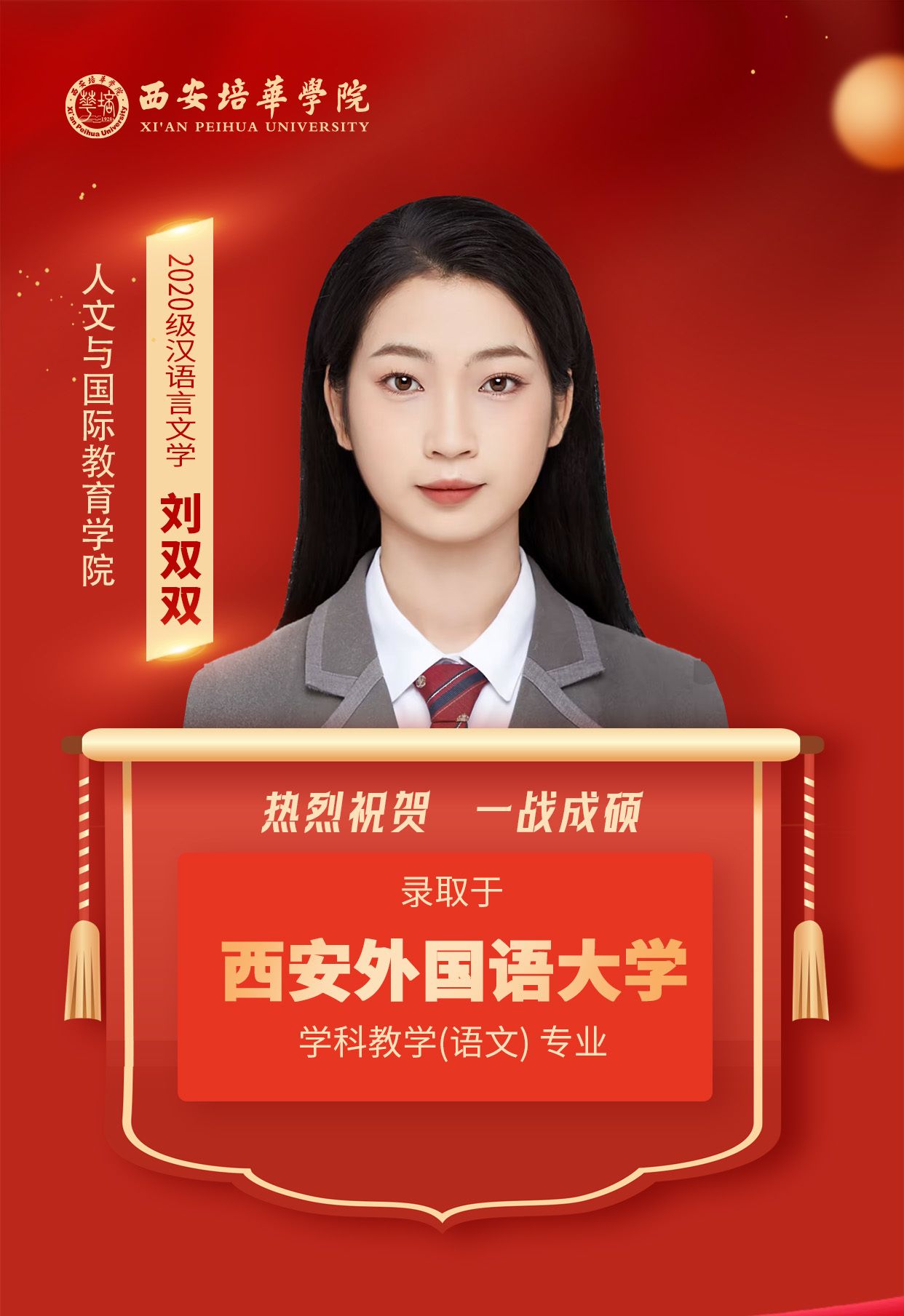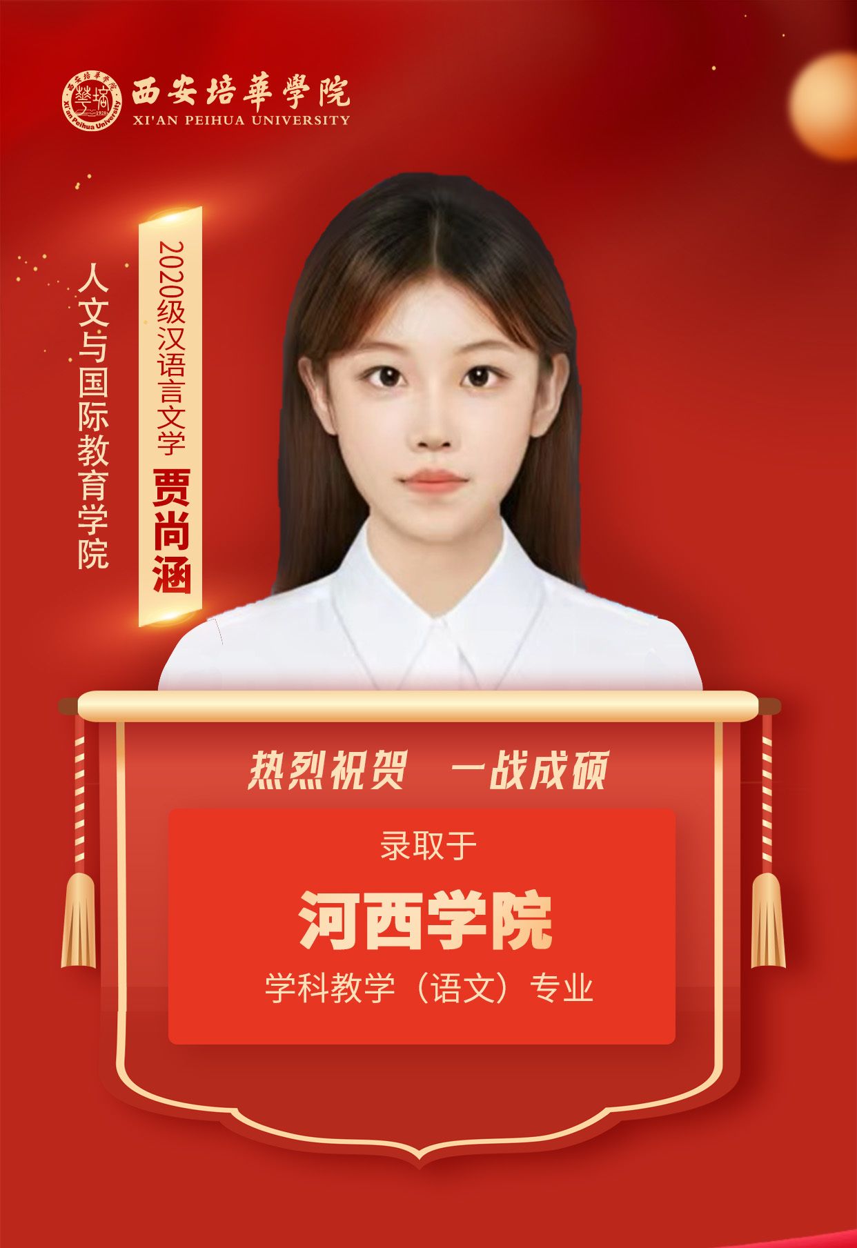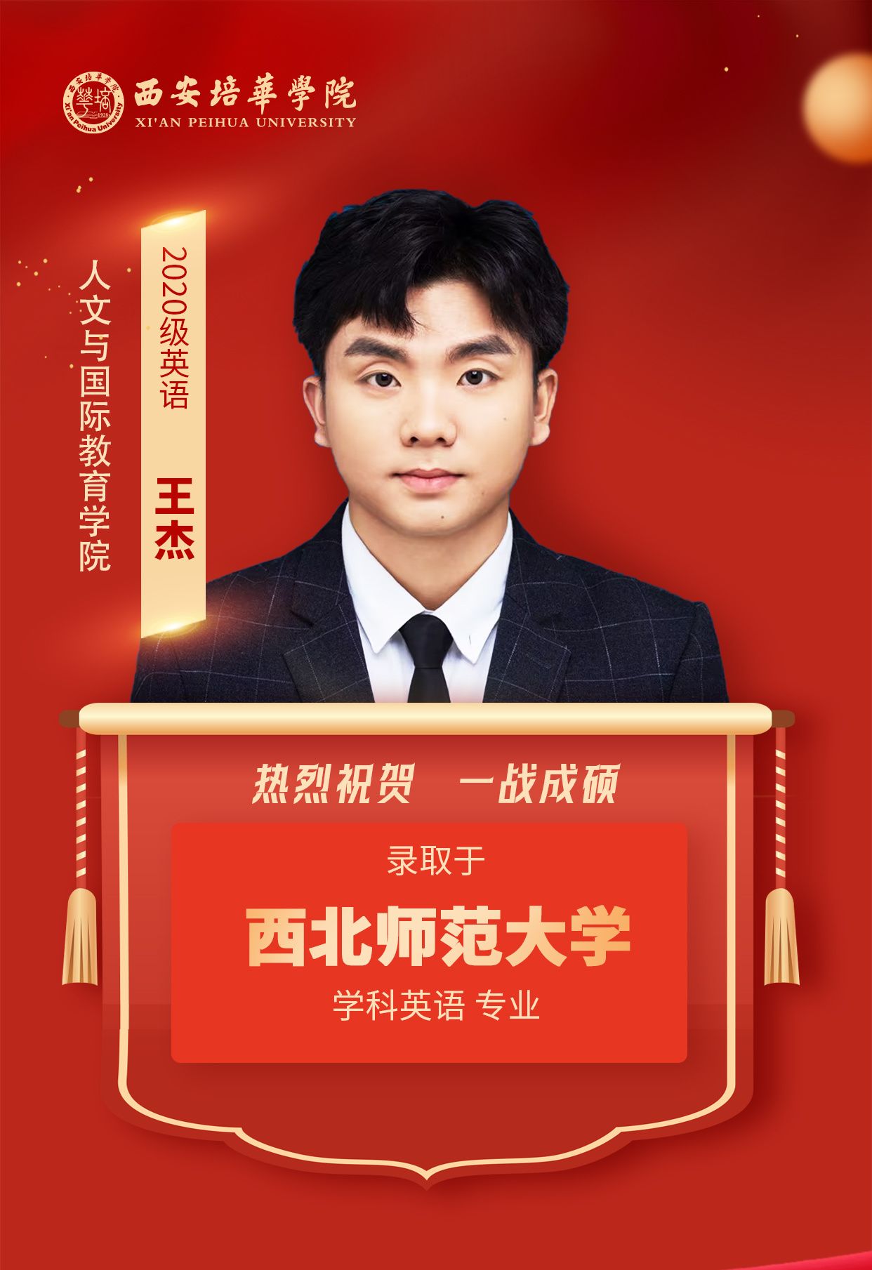 2020级英语专业王杰(考入西北师范大学):那些你努力学习的瞬间,你熬过的夜,终会化成点点星光,照亮未来的路,祝各位学弟学妹们顺利上岸,前途似锦!