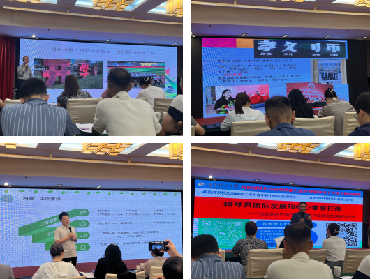 此次培训邀请了大连海事大学二级教授、博士生导师曲建武,江西理工大学能源与机械工程学院党委书记饶先发,西南政法大学辅导员、二级教授简敏,哈尔滨师范大学马克思主义学院辅导员、教育部高校思想政治工作骨干刘国权等分别以《做好大学生人生成长的指导者和引路人》《辅导员团队发展和核心素养打造——谈谈新时代高校辅导员工作室建设的探索与思考》《新时代高校辅导员的“五度”工作法》《新时代高校辅导员的任务要求与职业规划》为题进行专题报告。