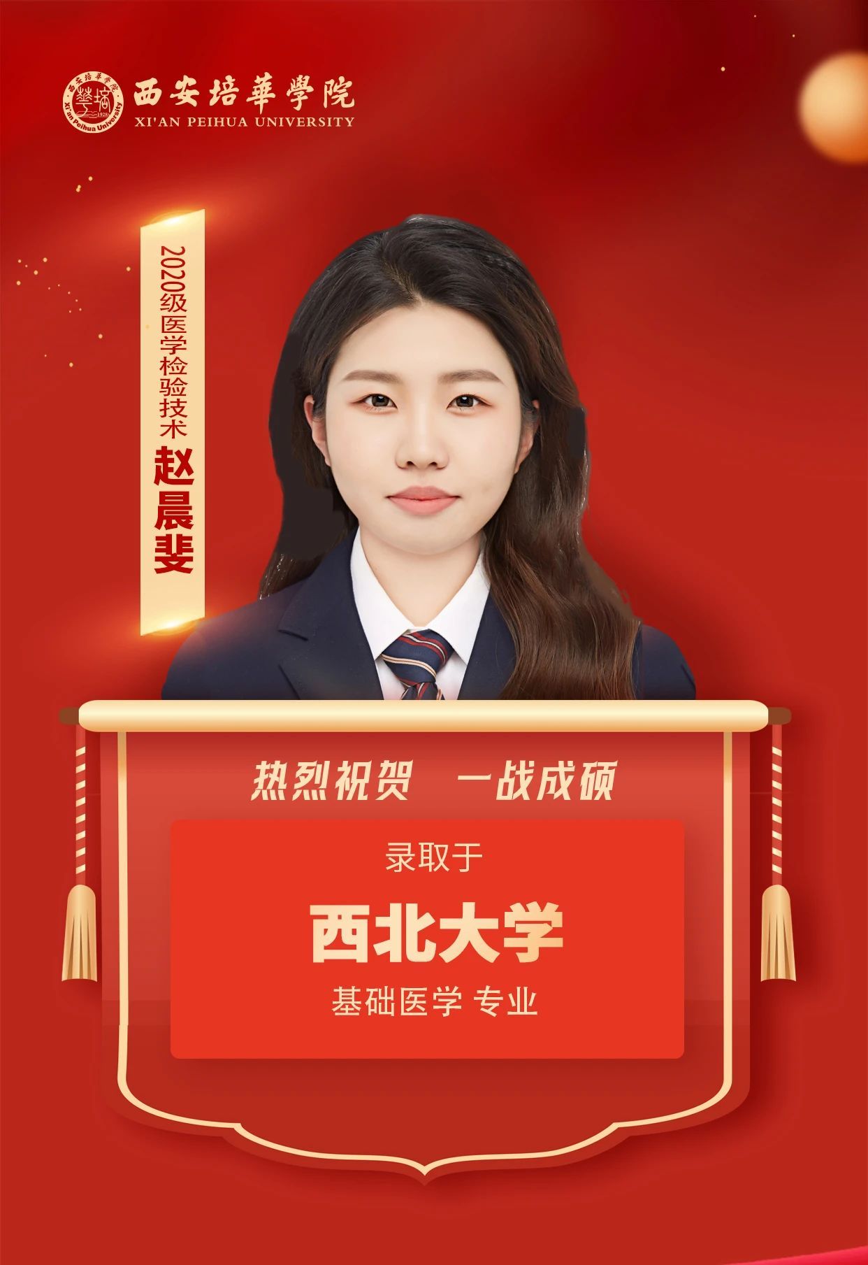 2020级医学检验技术专业赵晨斐(考入西北大学):每一个写错的题,每一个辗转的夜晚,每一个崩溃的瞬间,都在支持你成为更好的自己。此后如竟没有炬火,你便是唯一的光。