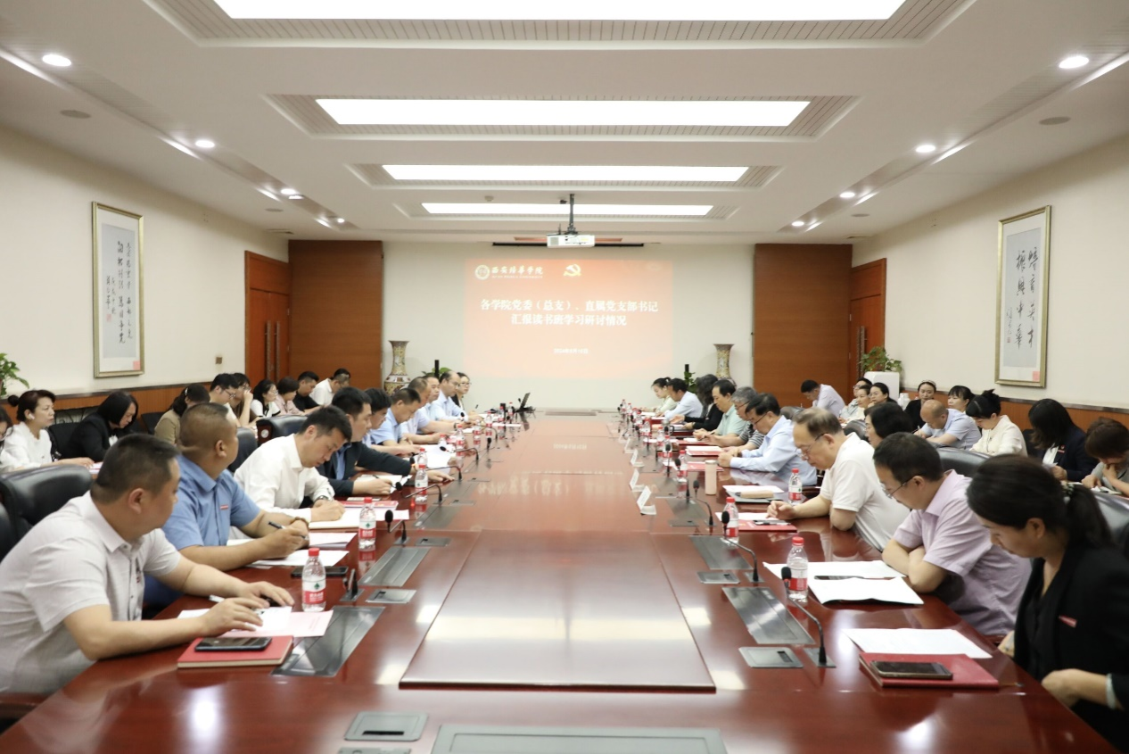 各学院党委(总支)、直属党支部书记联系工作实际,结合学习思考,相继汇报读书班学习研讨情况。校党委书记刘锋,校长李映方,常务副校长胡俊生,副校长、党委副书记姚文静,副校长刘越莲,党委委员、校长助理鲍伟围绕六大纪律研讨交流发言。