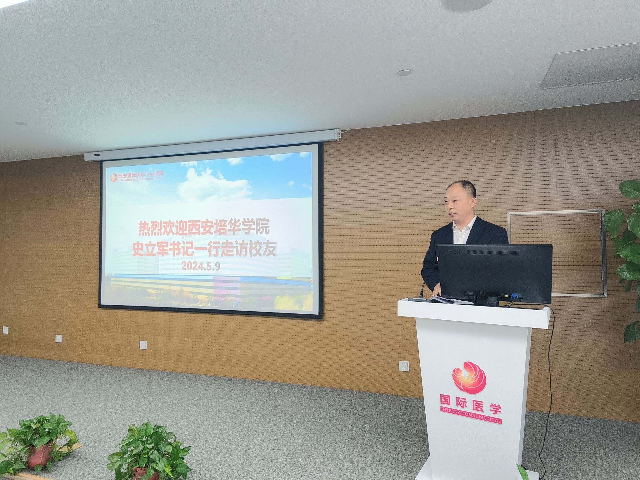 史立军书记对西安国际医学中心的热情接待表示感谢,他介绍了医学院近年来发展概况、就业规模及突出成绩,赞扬了校友们学以致用、兢兢业业,在各自岗位上深耕不辍、砥砺前行的拼搏姿态和奋斗热情,希望校友们与母校同心同向同行,共建共享共赢。