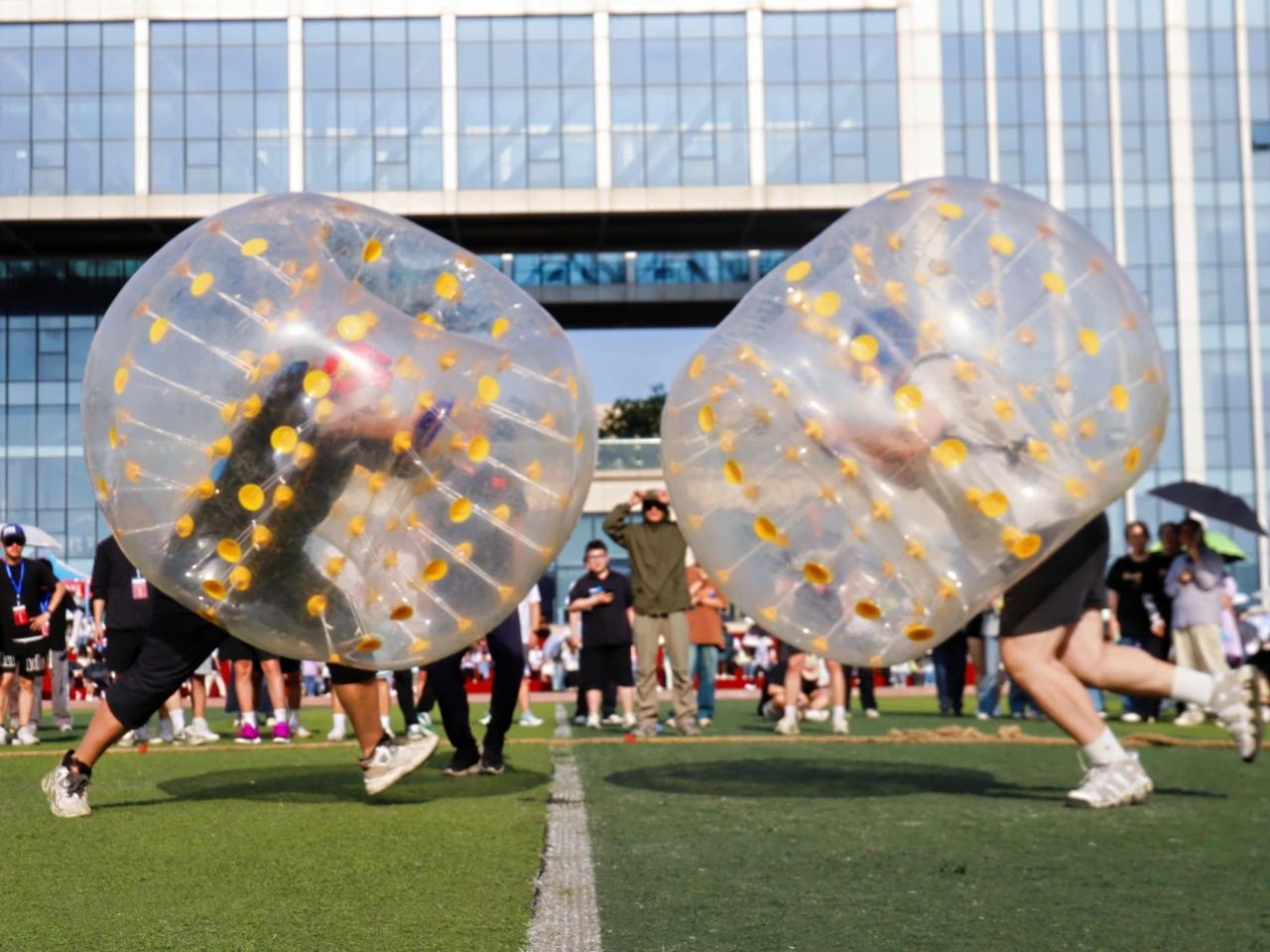 在赛场的另一边,教职工们毫不逊色,他们神采奕奕、精神焕发,精彩亮相。