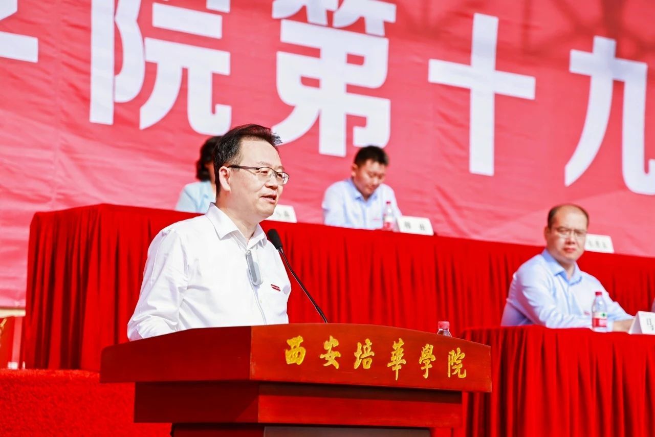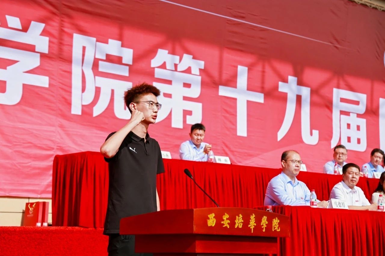 姜波理事长致辞。他回溯校史时讲到,“锻炼健全体魄”是培华学院1928年建校之初提出的七条人才培养要求之首,正是培华学院对体魄健康的重视,使得培华能培育出近代革命家、上世纪全省女子篮球冠军……以及现在沐浴在阳光下的每个培华学子们。春季运动会是我校体育工作的一次大检阅,更是广大师生精神面貌的一次大汇演。他坚信,培华学子能不断在历练中成长,用良好的心态和健全的体魄去面对未来的“不确定”!他期待每位运动员以饱满的精神、昂扬的斗志,拼出成绩、赛出风格,展示培华学子的风采。