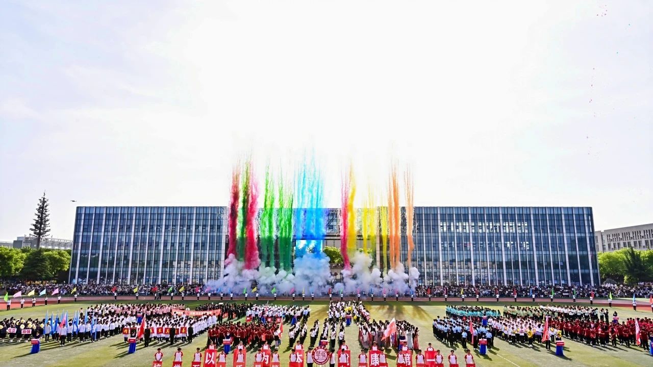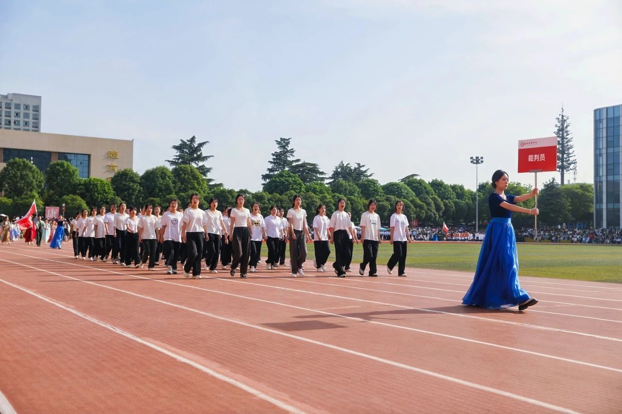 国旗护卫队、裁判员、运动员及教工方阵依次入场。迎着朝阳的光辉,斗志昂扬的学子们满怀豪情,踏着清晨的朝露,桃李芬芳的教师们容光焕发。他们呐喊高歌、乘风破浪、奔向胜利。