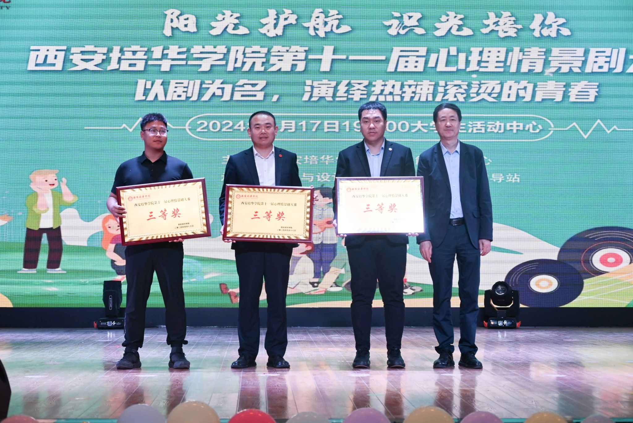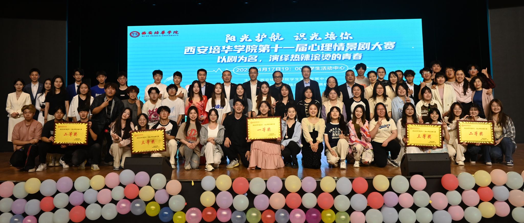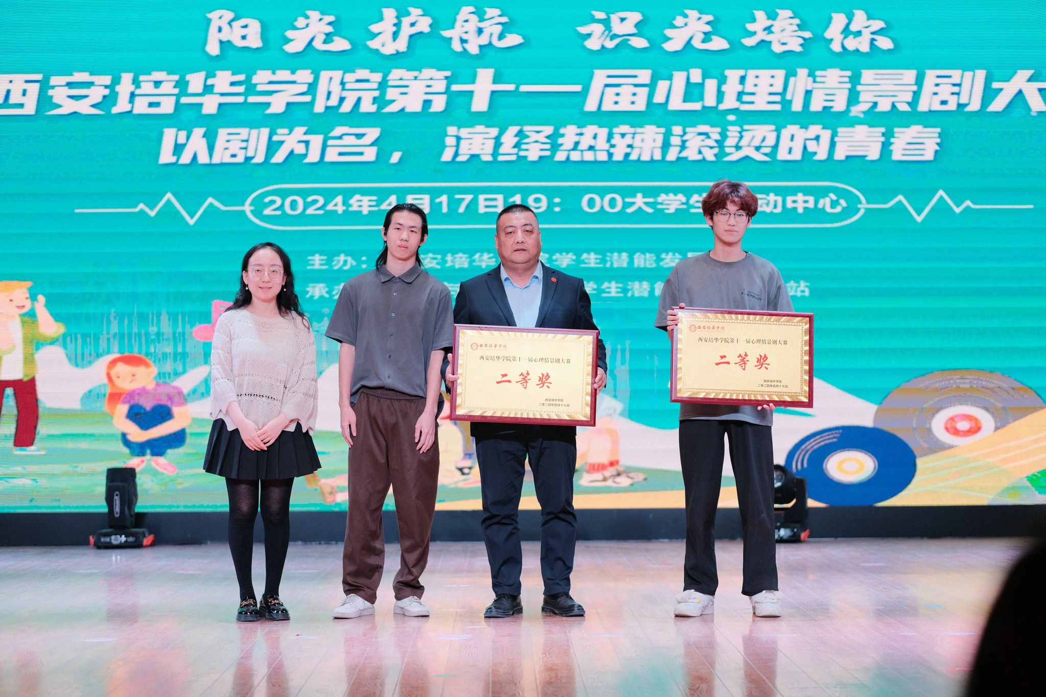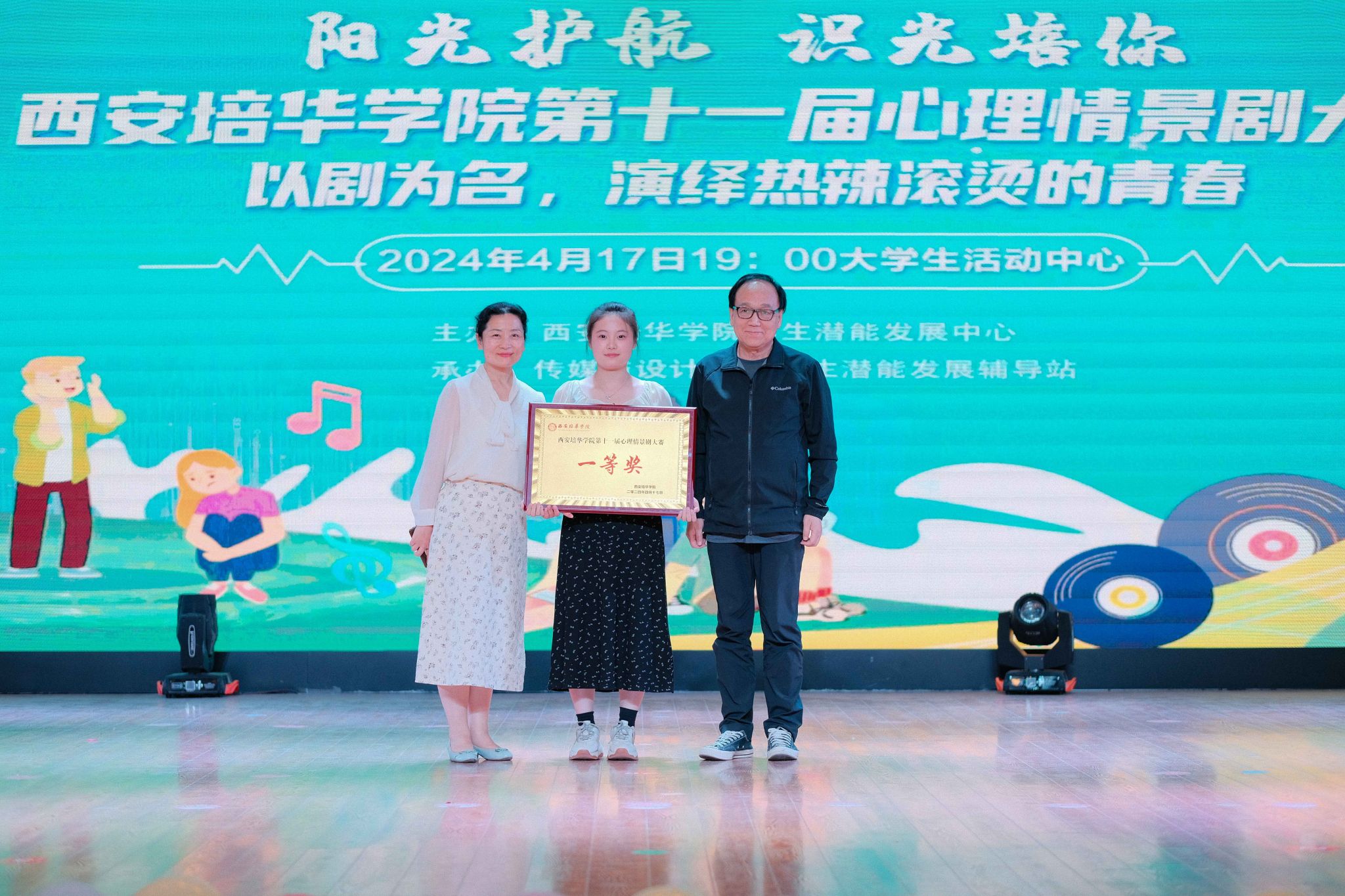 4月17日晚,由西安培华学院学生潜能发展中心主办、传媒与设计学院承办的西安培华学院大学生心理情景剧决赛正式落下帷幕。本次大赛以“以剧之名,演绎热辣滚烫的人生”为主题,旨在鼓励学生通过戏剧表演形式表达和处理心理冲突和情绪问题,促进自我成长。陕西高校心理素质教育研究会会长郑林科,西北工业大学学生心理健康中心副主任刘欣,学生工作部部长权勇太,艺术教育中心主任刘荣弟,学生潜能发展中心主任韩赟,医学院党委书记兼行政副院长史立军,会计与金融学院党委书记兼行政副院长刘斌,体育学院党委书记兼行政副院长马德厚,法学院党委书记兼行政副院长韩斌,传媒与设计学院党委副书记南斌红等师生代表出席。