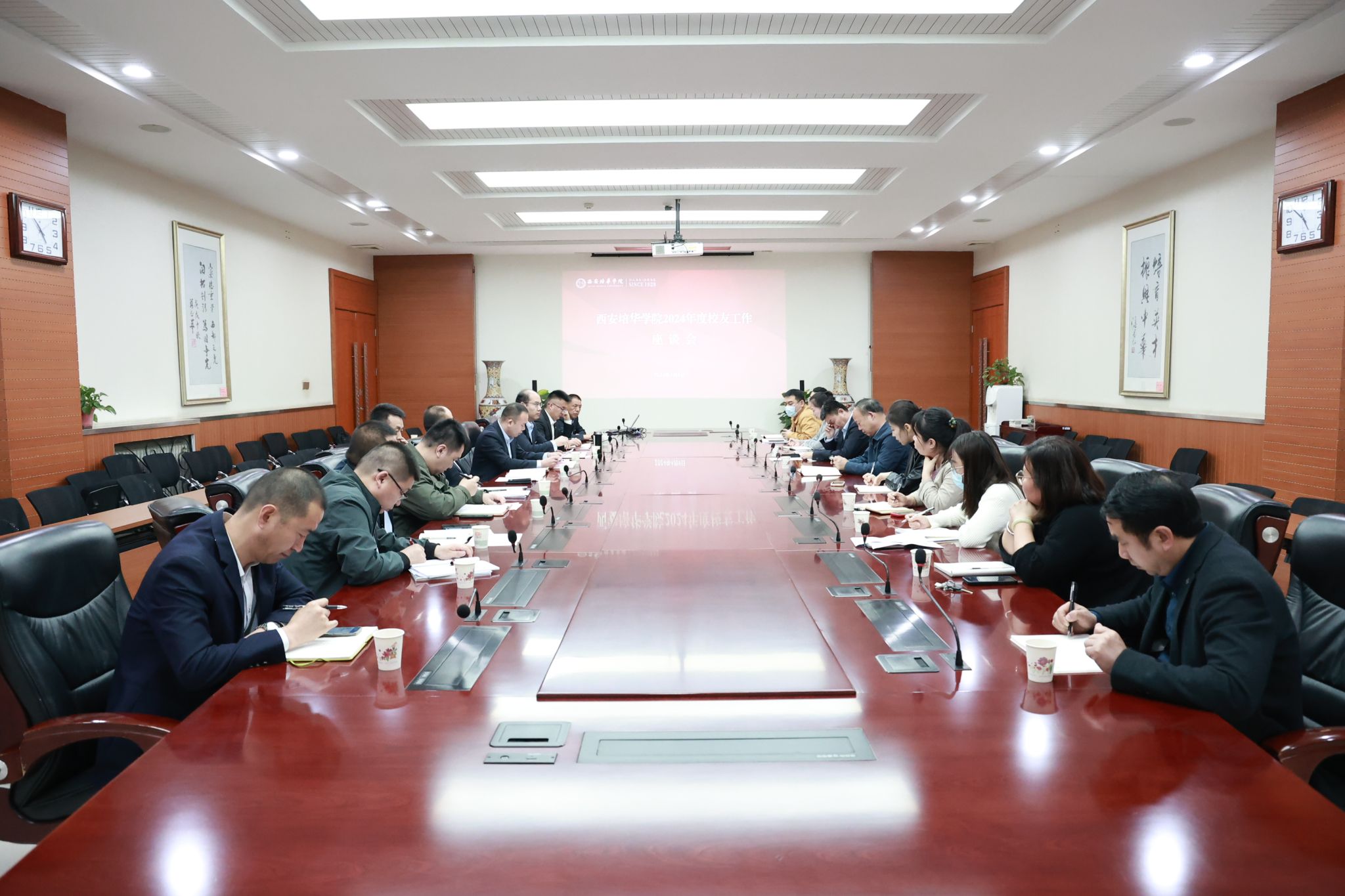 4月9日下午,西安培华学院2024年度校友工作座谈会于明德楼第一会议室举行,副校长罗新远出席会议并讲话,各二级学院主管校友工作的院领导及联络员老师参与会议。座谈会由合作发展中心主任柳雨主持。本次座谈会旨在回顾梳理2023年度学校校友工作,总结优势不足,凝练经验智慧,为2024年度校友工作的开展落实新部署,勾勒新路径,绘就新蓝图。