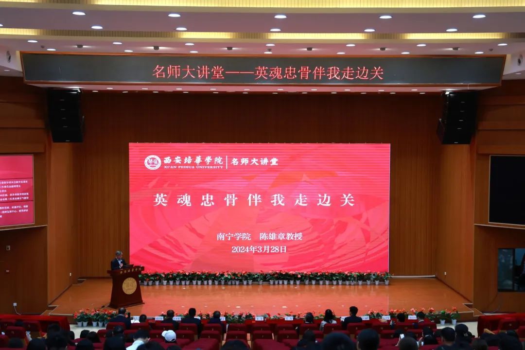 3月28日,西安培华学院名师大讲堂之“英魂忠骨伴我走边关——纪念戍边卫国战争胜利45周年”主题报告会在维之图书馆举行。南宁学院副校长陈雄章教授讲述了众多戍边英雄的事迹和感人故事,引导师生正视历史,缅怀革命先烈、传承红色精神。