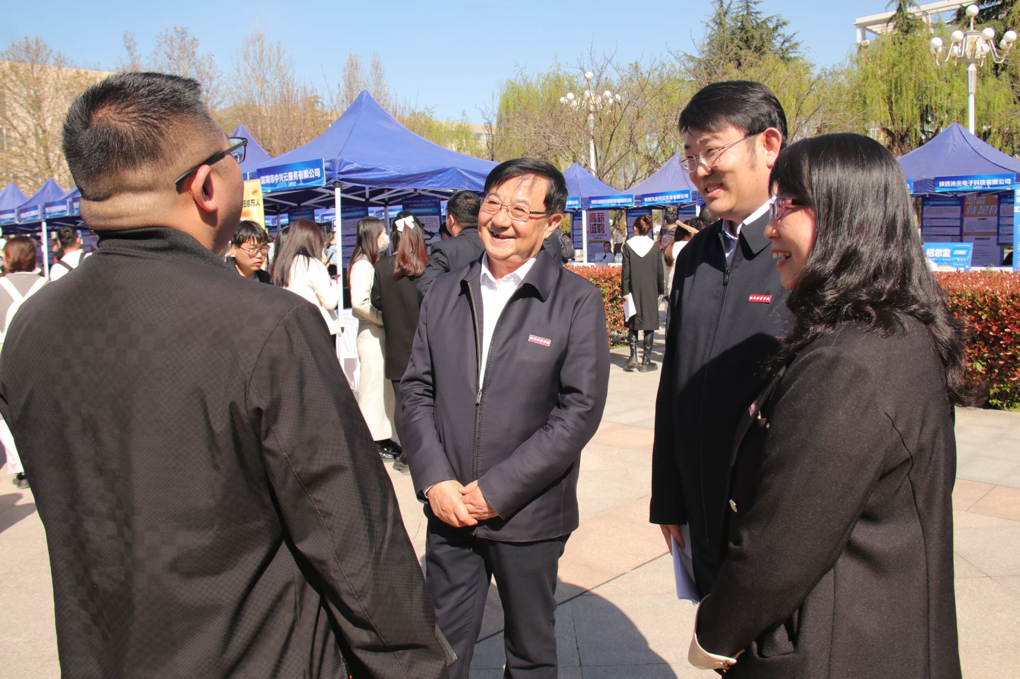 相关领导一同视察招聘会现场,了解企业和学生的需求
