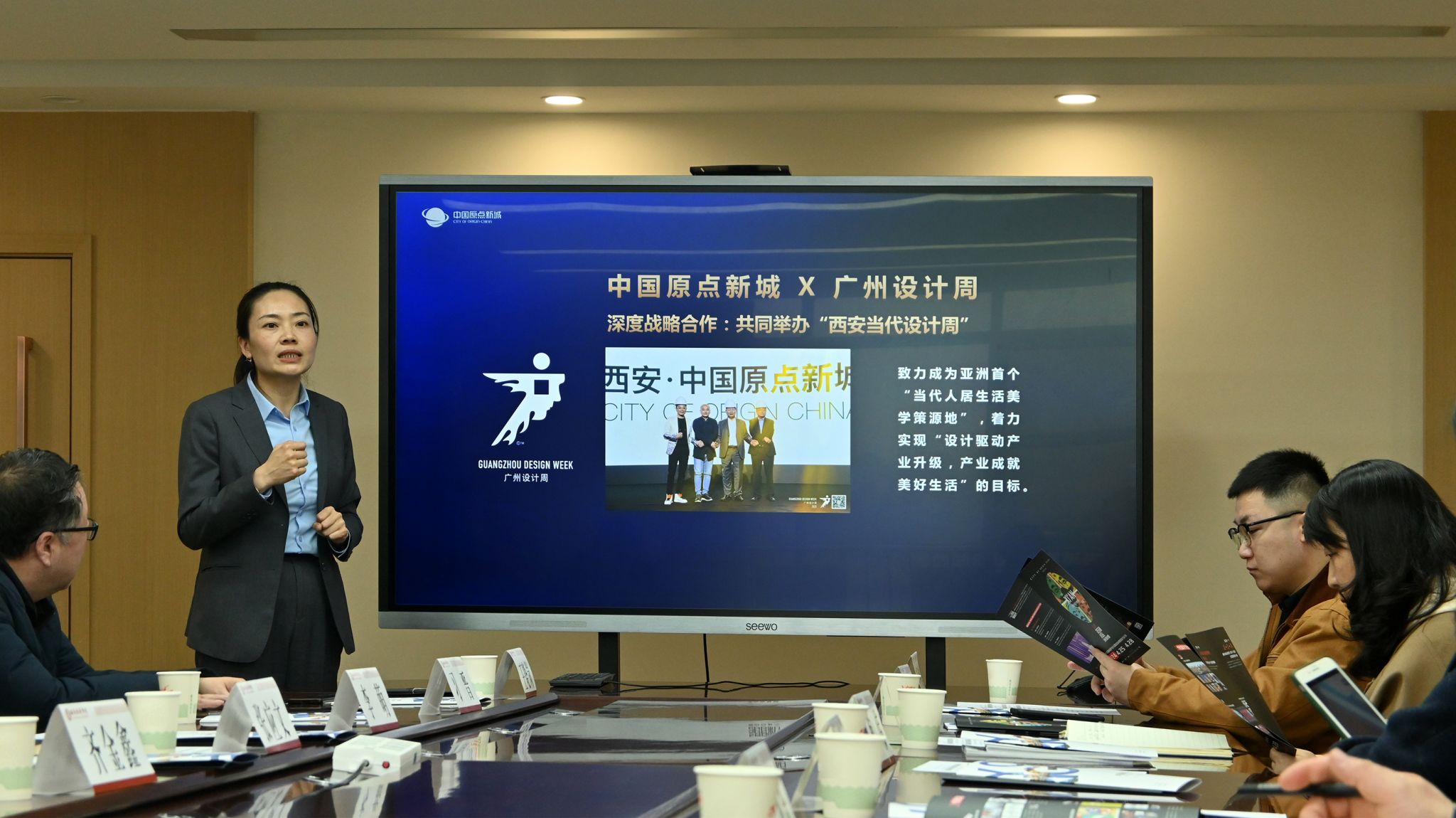 3月26日下午,西安当代设计周组委会一行来到西安培华学院洽谈合作。校长助理鲍伟,招生与就业指导中心主任姚斌、副主任王琳,合作发展中心副主任刘斌,传媒与设计学院副院长赵思源,创客中心负责人王旭东参加座谈。座谈会由设计创新中心主任王子健主持。