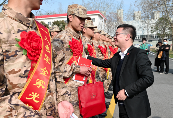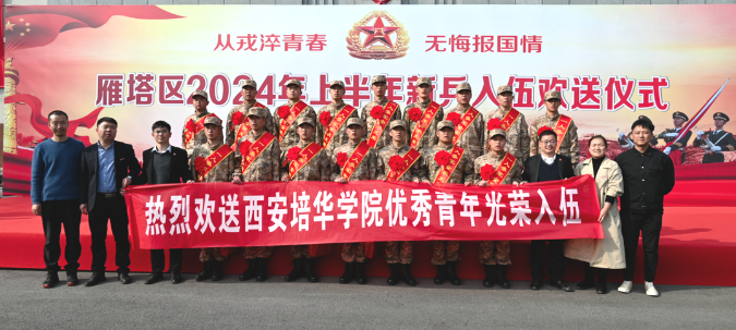 新兵入伍壮雄心,热血青春志报国。为激发广大师生拥军热情,体现学校对参军大学生的关心关怀,3月15日,学校党委学工部(征兵工作站)前往西安市民兵训练基地,慰问欢送2024年春季校内应征入伍的16名新兵。