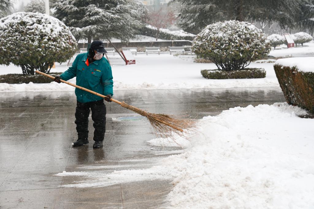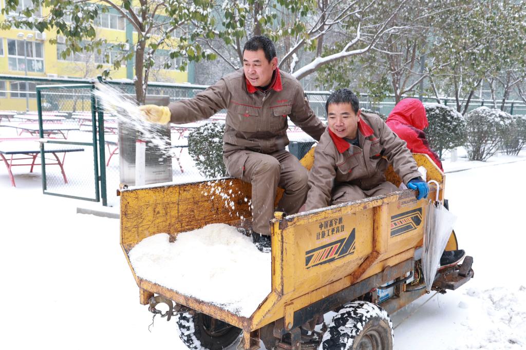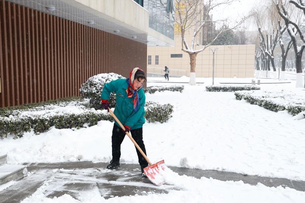 飞雪作伴,后勤人员日日夜夜忙碌在校园各处,默默呵护着每一个角落。