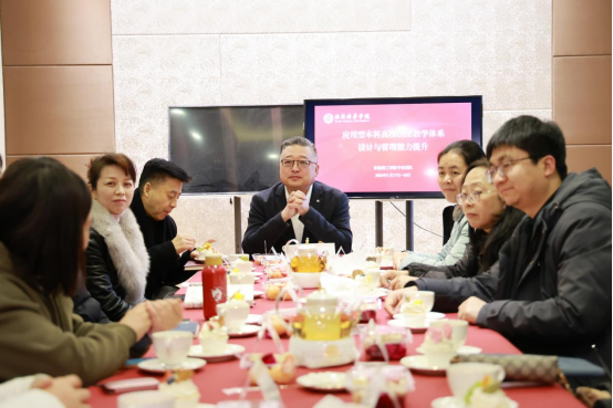 培训尾声,学校组织了产教融合工作坊,邀请校外专家和学校发展规划与质量建设中心、教务管理中心部分领导及二级学院全体教学副院长就现代产业学院建设、校企深度合作、学院创收创新等方面进行深度交流。
