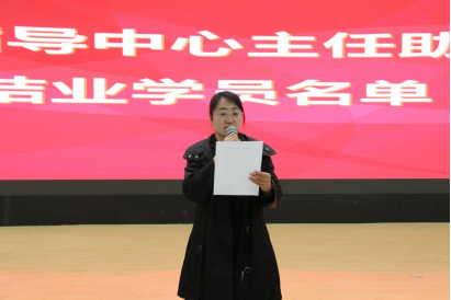 招生与就业指导中心主任助理王雪宣读结业学生名单,招生与就业指导中心副主任王琳宣读优秀班主任名单及优秀学员名单,并颁发结业证书、表彰优秀学员和班主任。