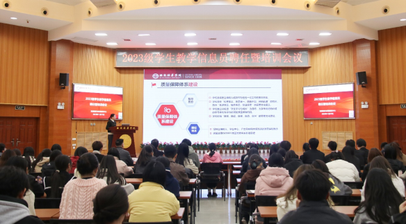 发展规划与质量建设中心主任助理全婧宣读了《关于聘任2023级和调整其他年级学生教学信息员的通知》,详细介绍学校质量保障体系建设情况,强调了学生信息员在质量监控中的重要作用。