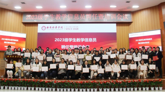 发展规划与质量建设中心主任赵巍和校级督导专家王法能教授分别为新聘学生教学信息分站站长和2023级教学信息员代表颁发聘书。