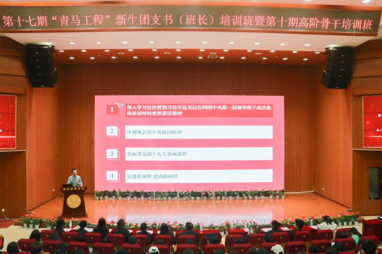 开班仪式结束之后,由团中央讲师团成员、西安培华学院云梯青年学校客座教授齐钊老师做《青春心向党 续写新华章——深入学习宣传贯彻习近平总书记重要讲话精神全面落实团十九大部署》主题报告,他深入解读习近平总书记在同团中央新一届领导班子成员集体谈话时的重要讲话精神、党中央致词精神和团十九大各项部署,从坚定理想信念、提升道德修养、增强能力本领、矢志不渝奋斗四个方面教育引导广大团员青年奋进新征程、建功新时代。